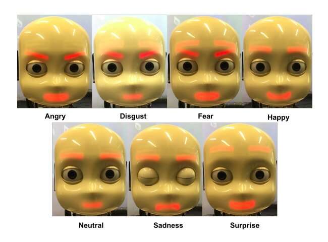 德国汉堡大学的研究人员最近开发了一种基于机器学习的方法,可以教机器人如何传达以前被定义为七种普遍情感的东西,即愤怒、厌恶、恐惧、幸福、悲伤、惊奇和中立状态。在预先发表在arXiv上的论文中,他们在名为iCub的人形机器人上应用并测试了其技术。